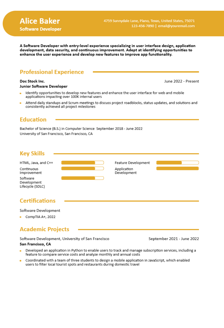 Make the resume template truly your own. Customize the layout based on your experience level.